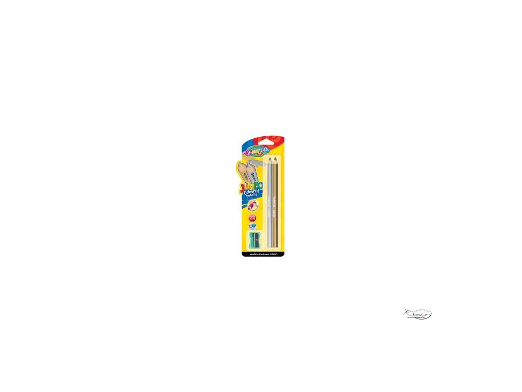 Kulaté silné pastelky - zlatá, stříbrná + ořezávátko na blistru.